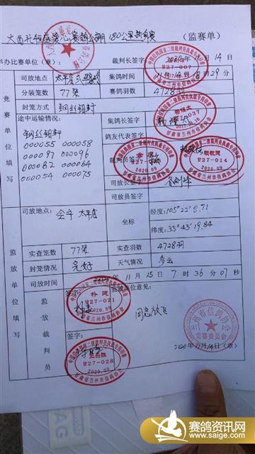 尊敬的各位会员: 大西北恒盛公棚第一关180公里热身赛在会宁太平店阳坡上于11月15日早上7点36分,在兰州市信鸽协会执裁团队的全程监督下准时开笼,司放地天气多云,鸽群走势良好,预祝全国各地鸽友飞出好成绩!