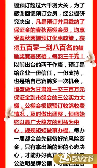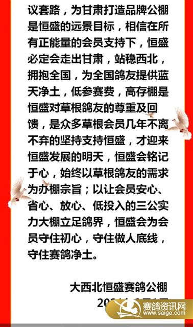 大西北恒盛赛鸽公棚喜迎新春 回馈鸽友 增大开奖面