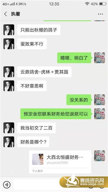 致恒盛会员: 首先感谢大家对恒盛公棚预订工作的支持,如有鸽棚拆迁或种鸽健康问题,以及家庭发生变化经济困难的鸽友,不能交鸽,可随时联系恒盛财务或管理人员为您及时办理退还预订金!恒盛的大门永远向鸽友双向敞开,鸽友可放心参赛,积极预订并缴纳预订金!祝您生活愉快,开心赛鸽!