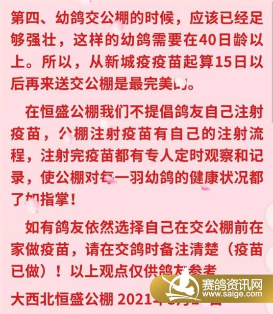 大西北恒盛赛鸽公棚交鸽温馨提示