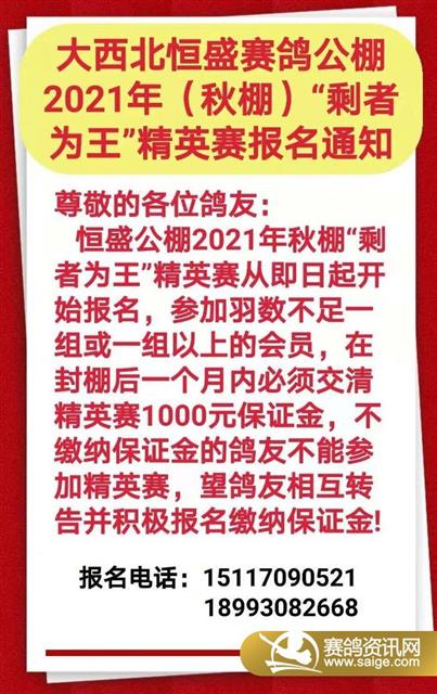 2021年恒盛公棚秋棚“剩者为王”精英赛规程(500公里决赛产生)(草案讨论稿)