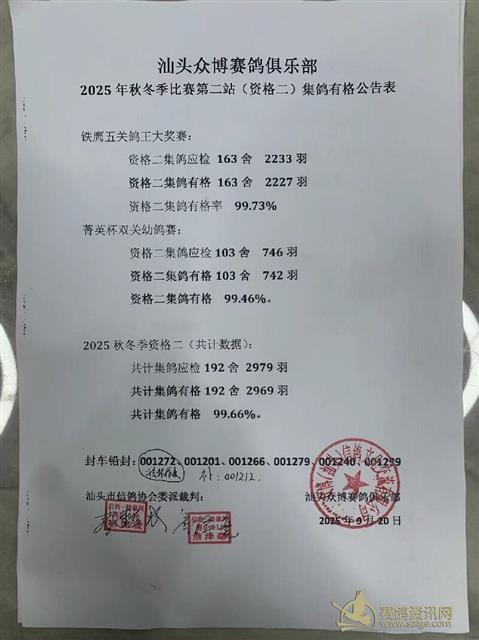 众博2025年秋冬季第二站(资格二)集鸽、封车、备案公示