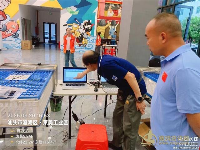 集鸽开始前,裁判确认6台集鸽电脑集鸽数据清零