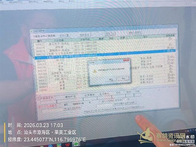 集鸽开始前裁判确认集鸽电脑数据清零 及确认第一羽参赛鸽集鸽上笼