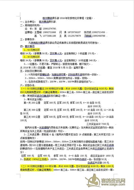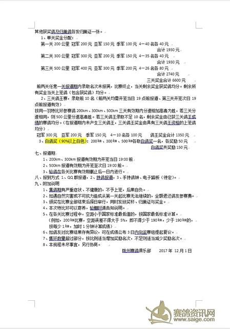 陇州赛鸽俱乐部2018年秋季特比环章程(定稿)