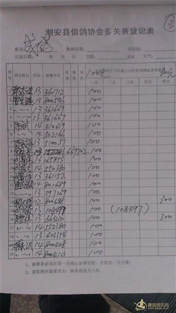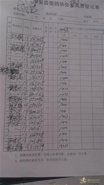 随车鸽友由黄锐忠指定(老五)电话:13539354193 各会员注意:福安站指定鸽计算成绩不用在获奖名次内,在当天19:30止,按信息台成绩计奖!