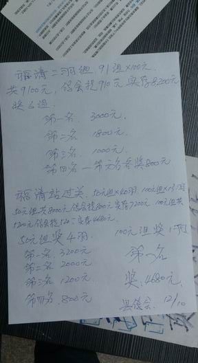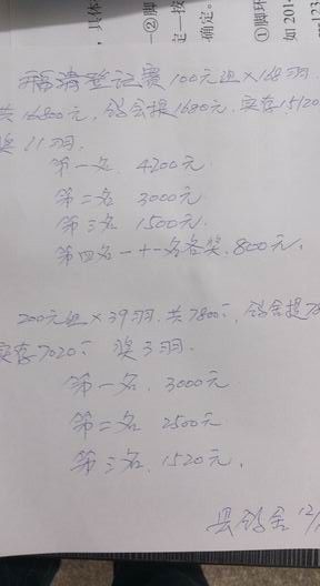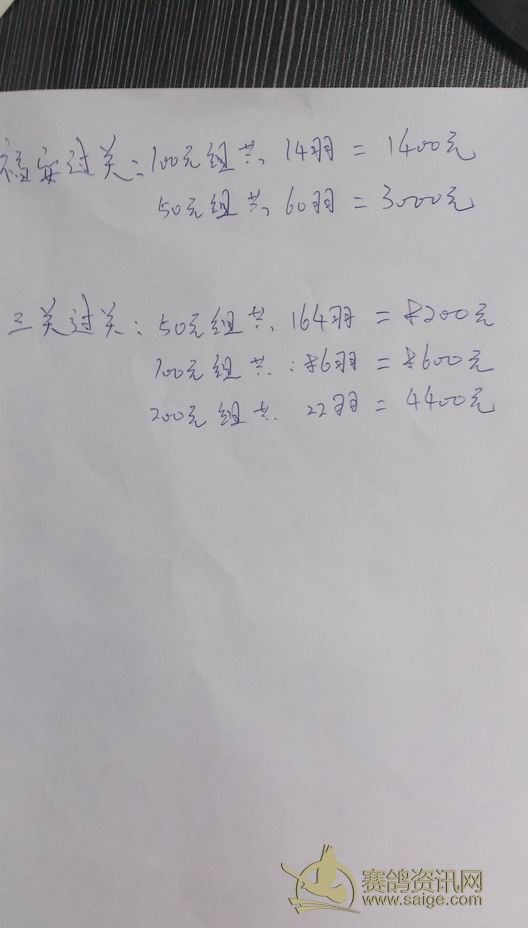 14年秋赛福清过关奖金分配