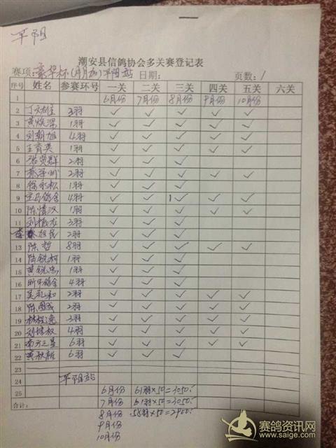 潮安县信鸽协会豪华杯“月月加”八月份名单