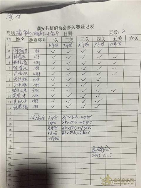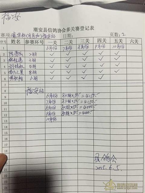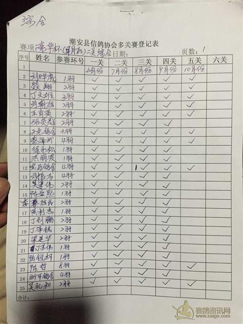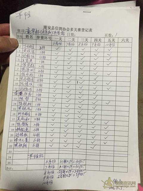 潮安县信鸽协会豪华杯“月月加”九月份名单