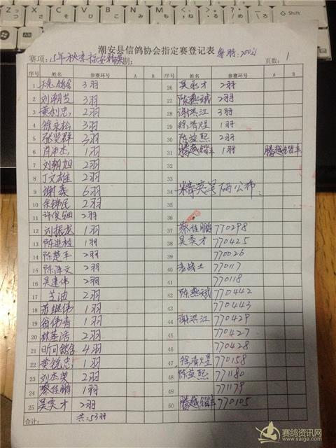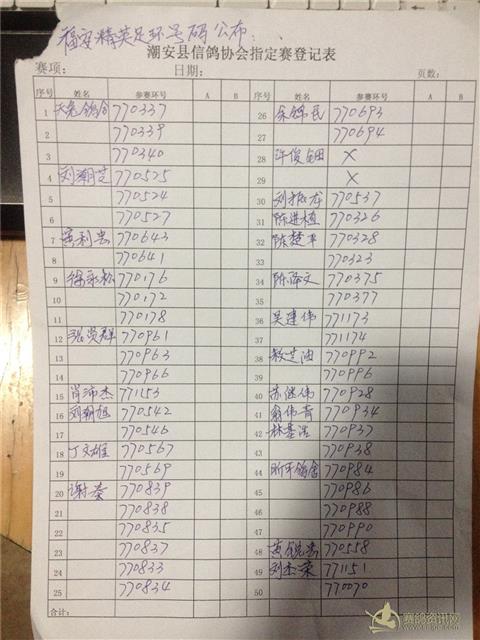 潮安县信鸽协会福安精英足环号码公布