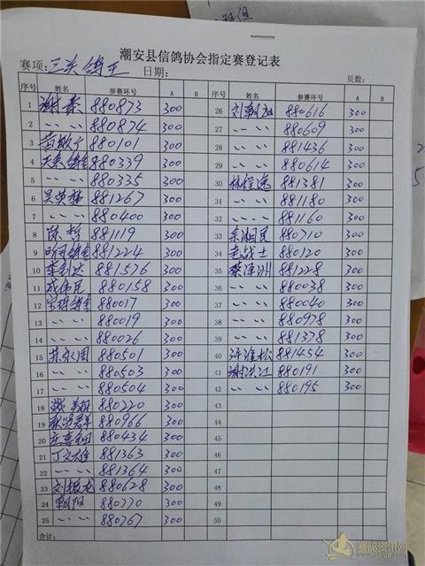 2015年秋季三关赛三关鸽王名单