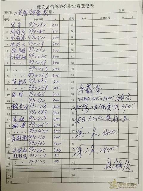 潮安县信鸽协会豪华杯二关综合争霸赛名单