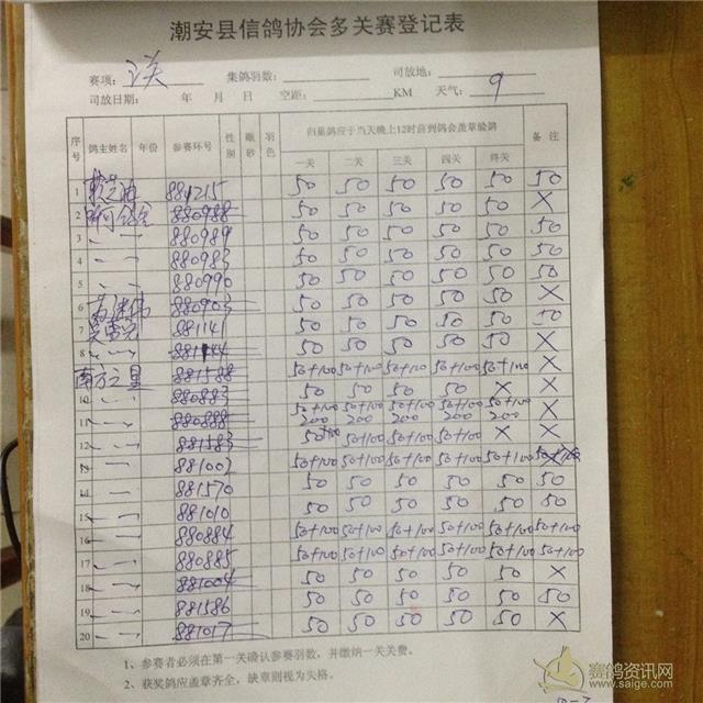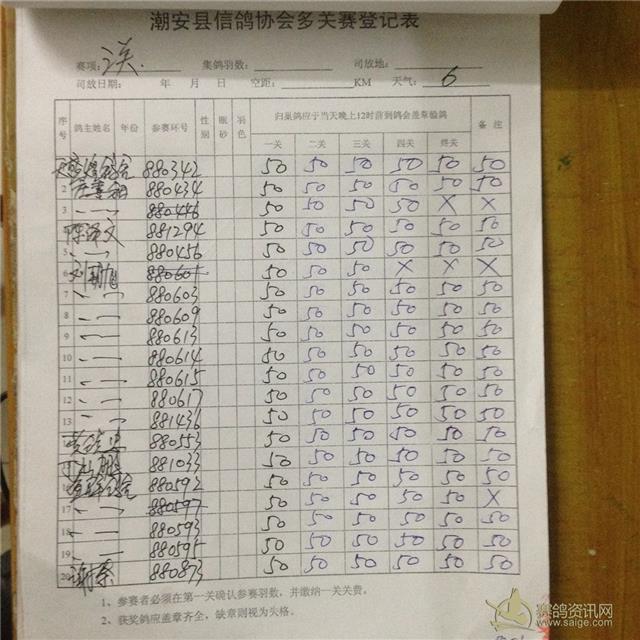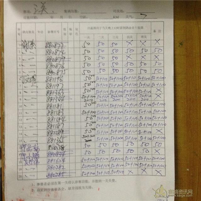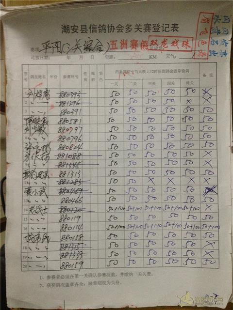 2015年秋季三关综合平阳站过关原表