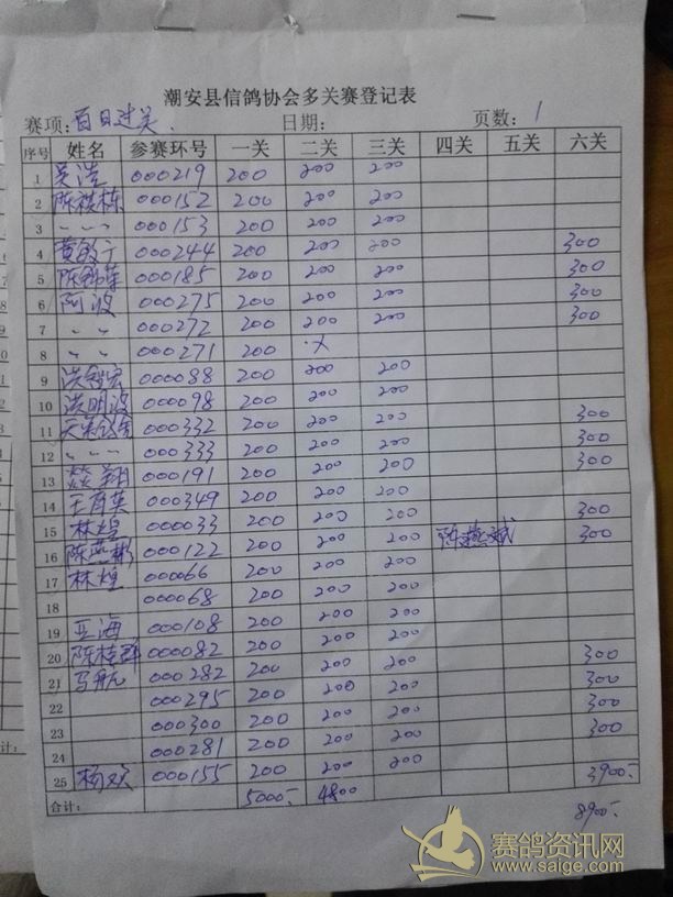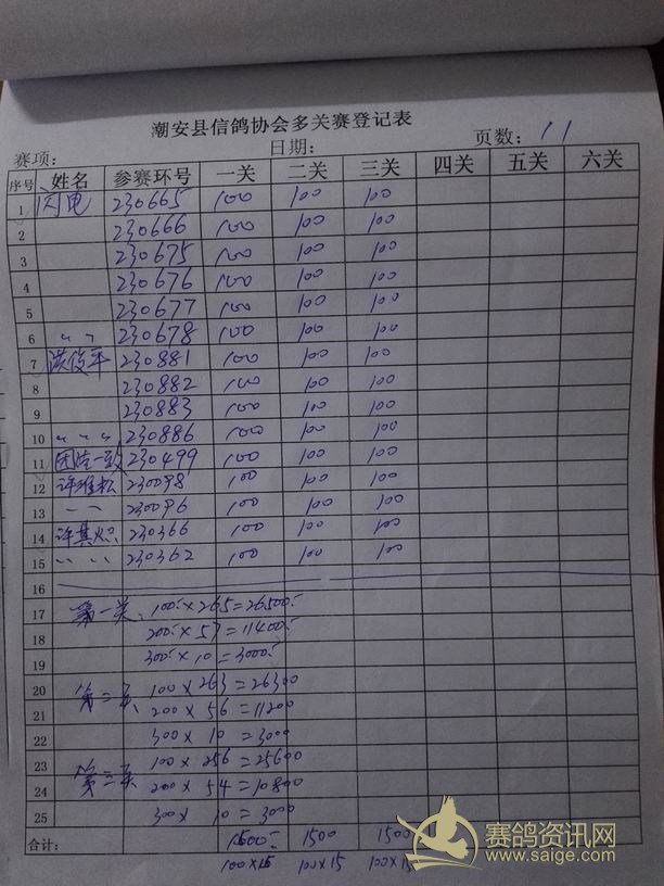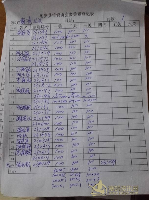 2016年冬季霞浦大奖赛第三站各项指定,过关表