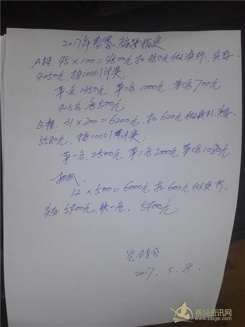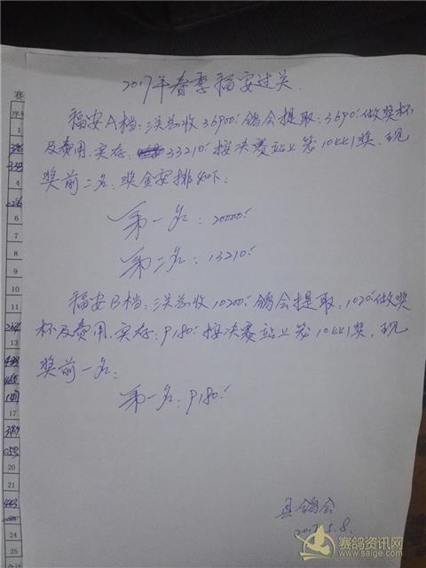 2017年春季福安决赛指定内表及奖金分配