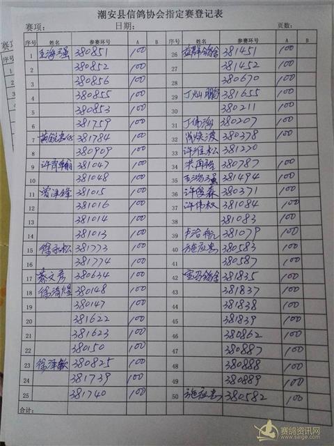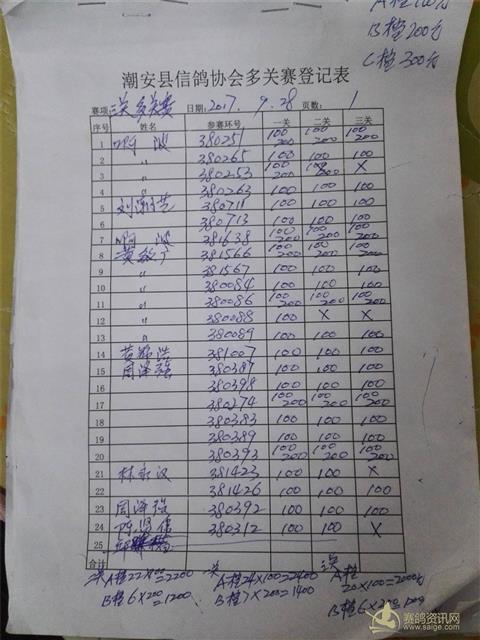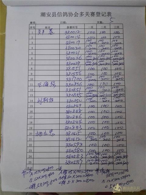 福安站单站赛第一页第二羽,谢秦:380890足环记错改为:380900