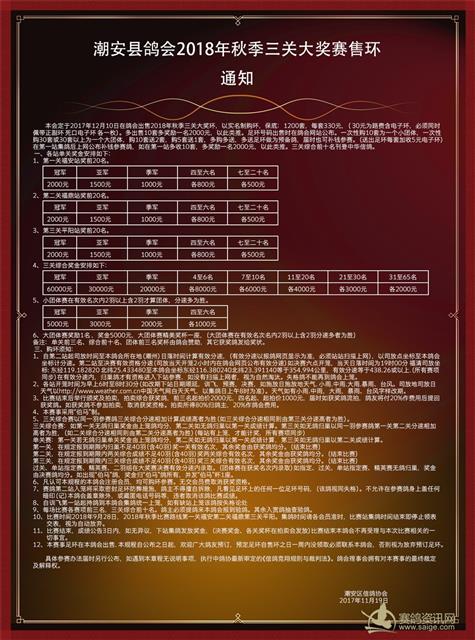 2018年秋季三关大奖赛售环通知