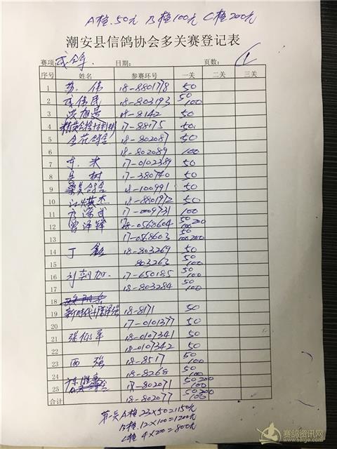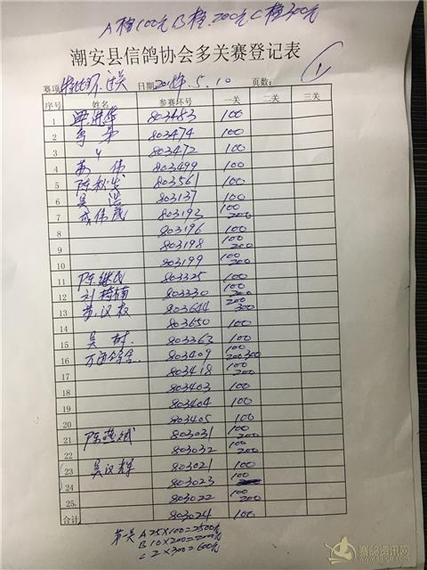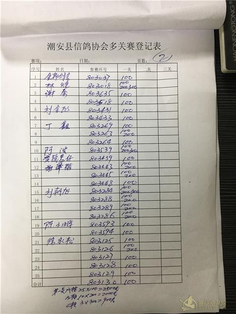 成鸽过关名单: