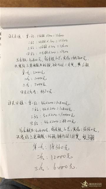 按三关章程规定,过关赛按决赛站上笼羽数15比1计奖。由工作人员计算错误,现进行更正。