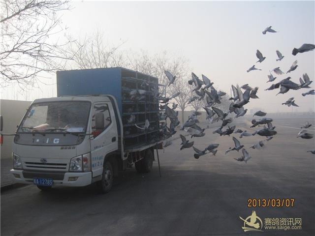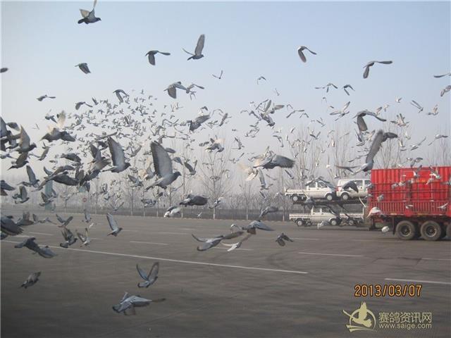 河北博冠赛鸽俱乐部3月6日A车100公里训放开笼瞬间(图)
