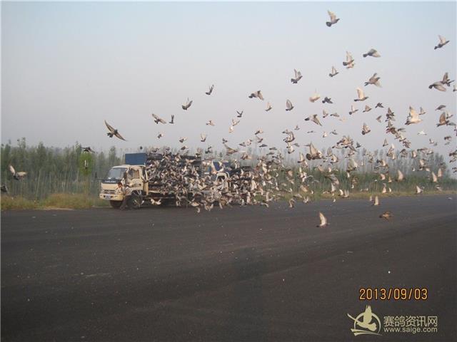 河北博冠赛鸽俱乐部2013年秋B车50公里训放开笼瞬间