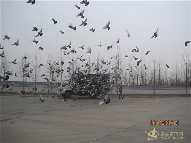河北博冠赛鸽俱乐部3月11日B车150公里训放开笼瞬间(图)