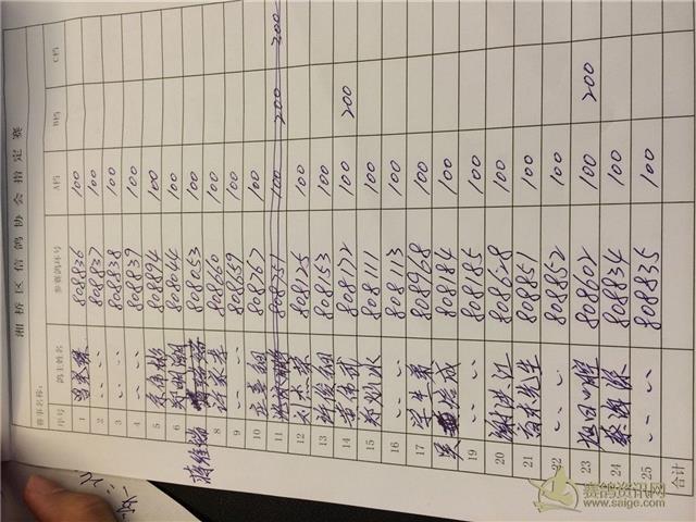 广东潮州市湘桥区信鸽协会2014年夏多关赛、指定赛登记表