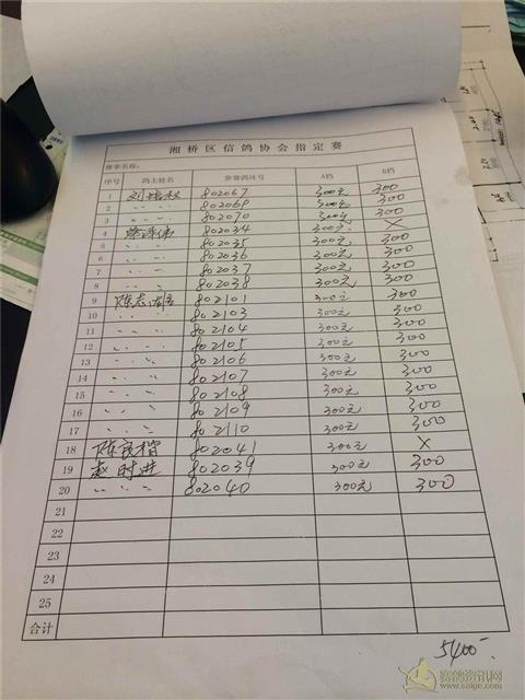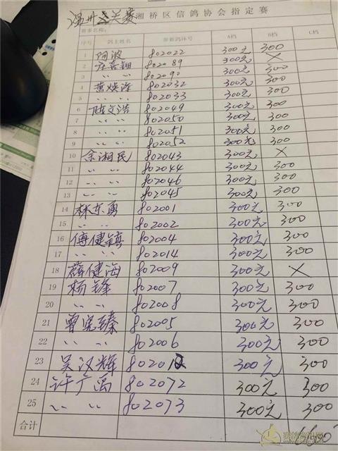 广东潮州市湘桥区信鸽协会三关赛登记表