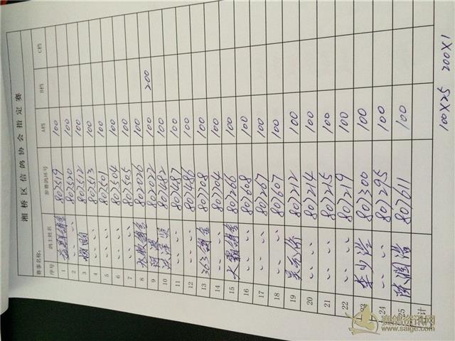 广东潮州市湘桥区信鸽协会2014年秋季幼鸽赛指定登记表