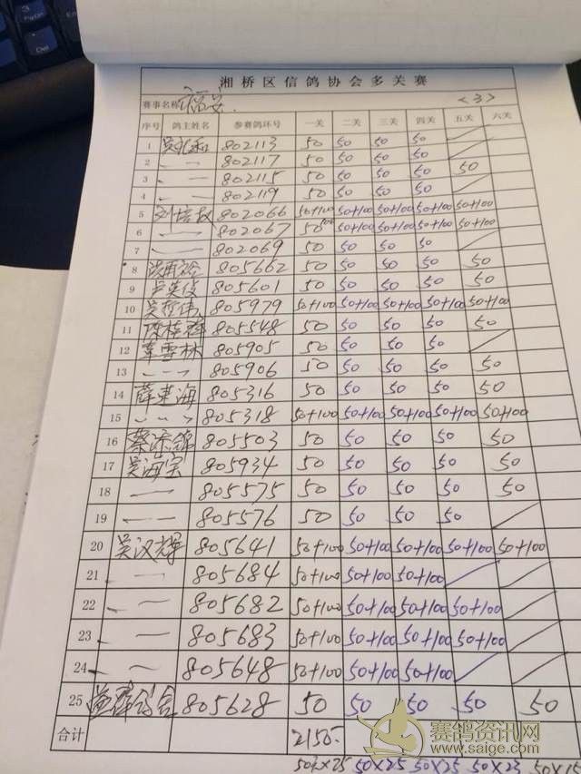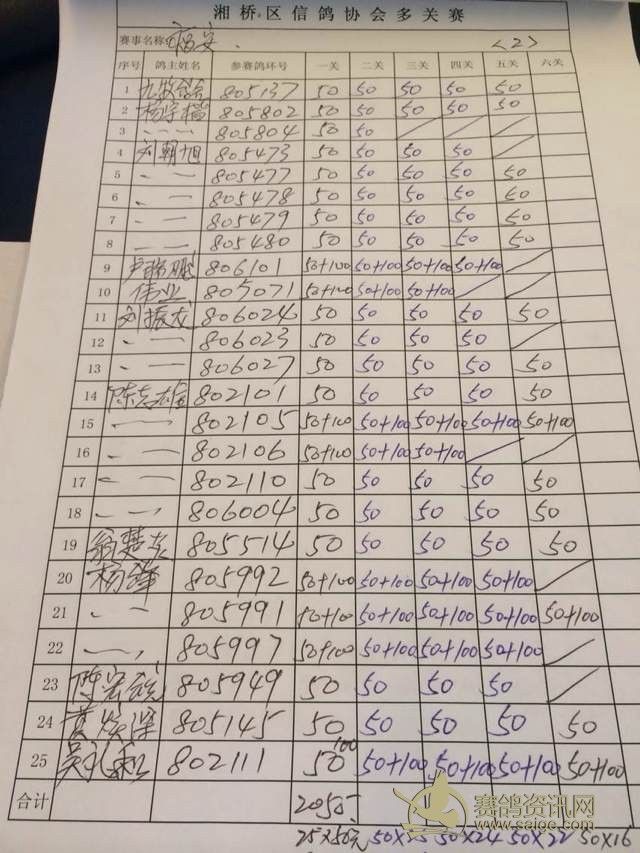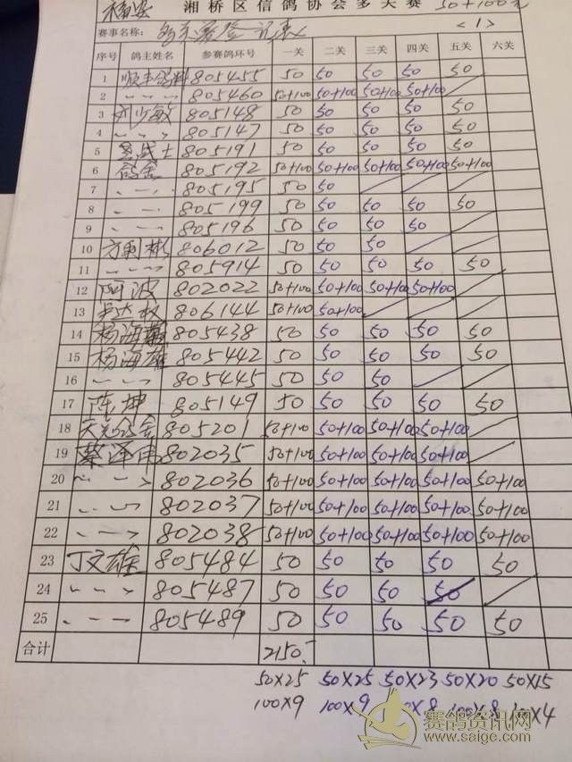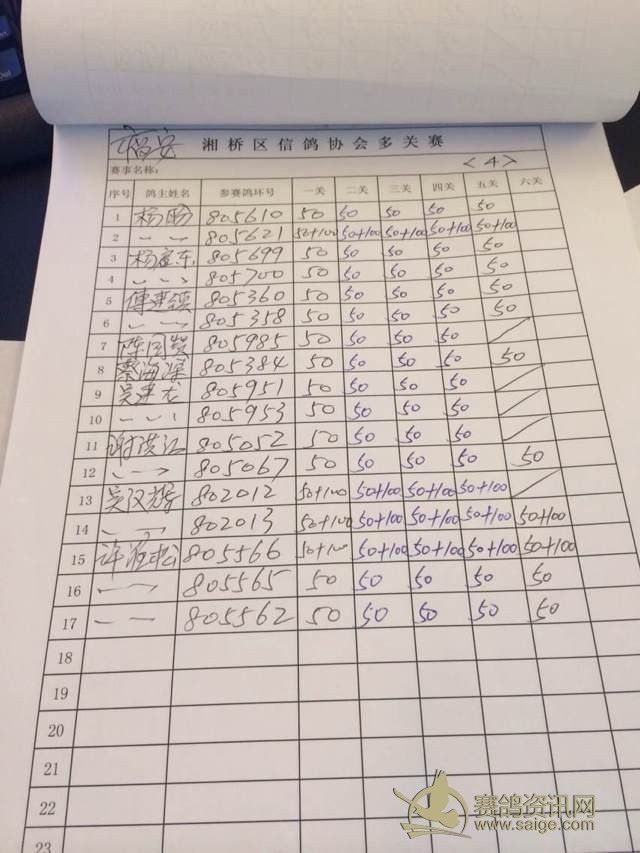 广东潮州市湘桥区信鸽协会2014年秋福安多关登记表