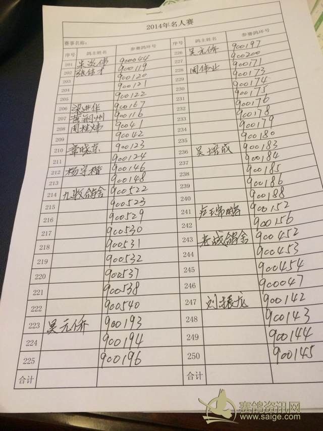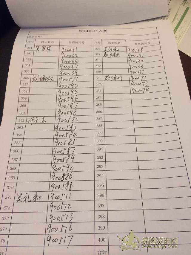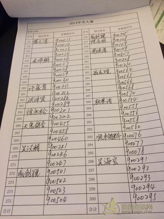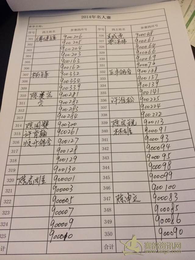 广东省潮州市湘桥区信鸽协会2014年名人赛登记表
