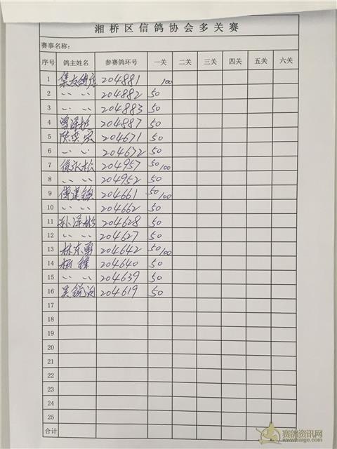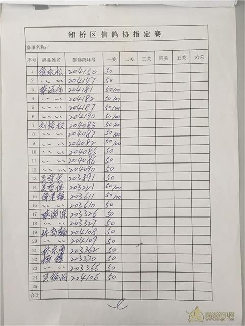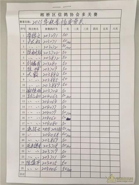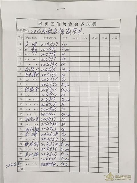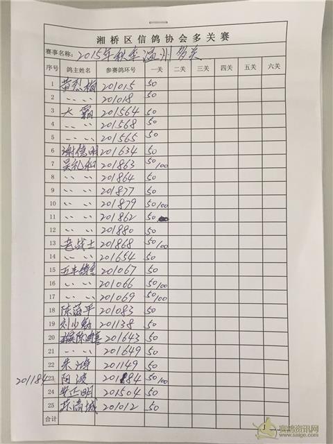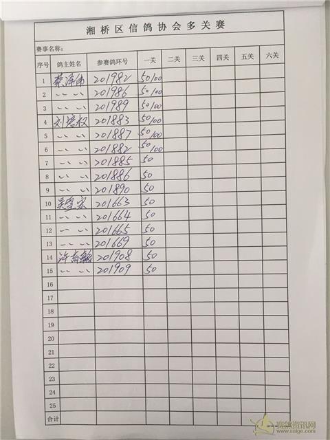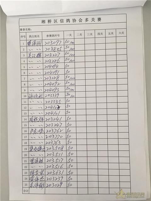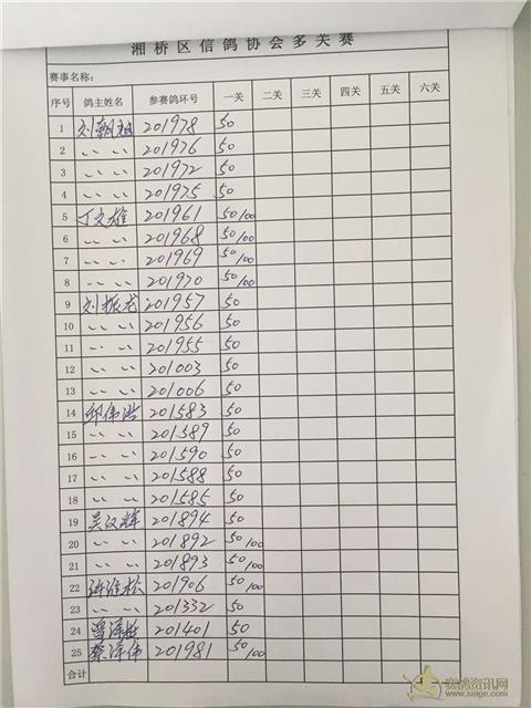 湘桥区信鸽协会秋季温州多关、福安多关、福清多关名单表