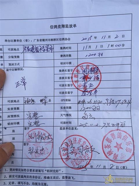 湘桥区信鸽协会500KM福安站 锁笼开笼信息