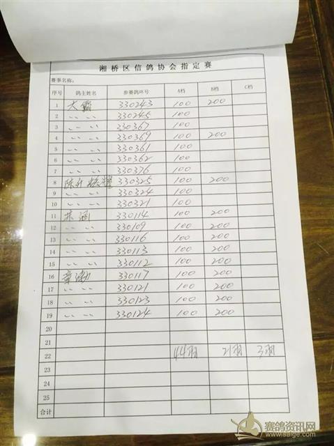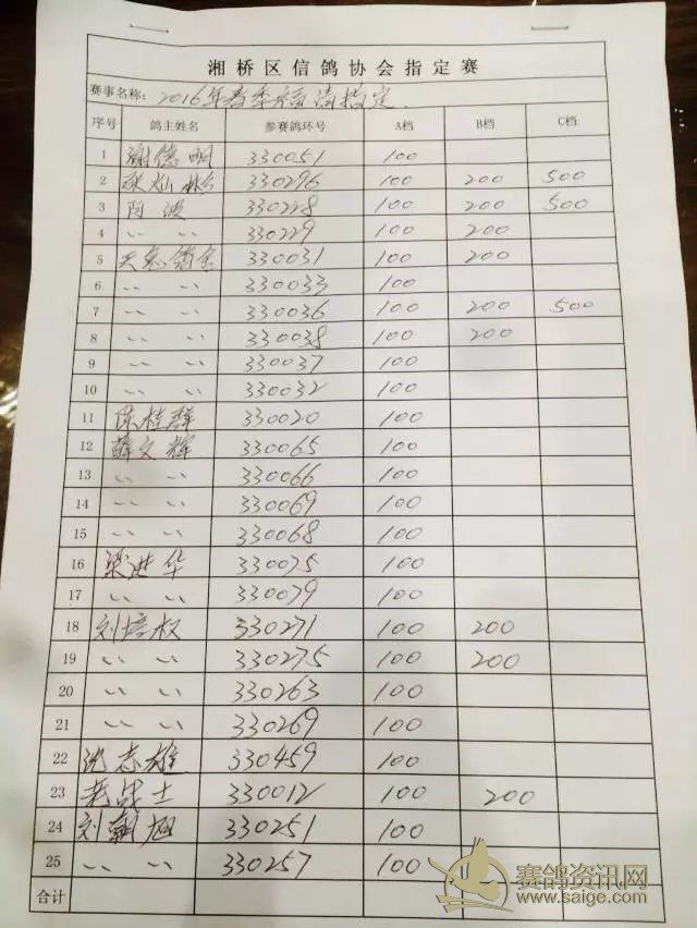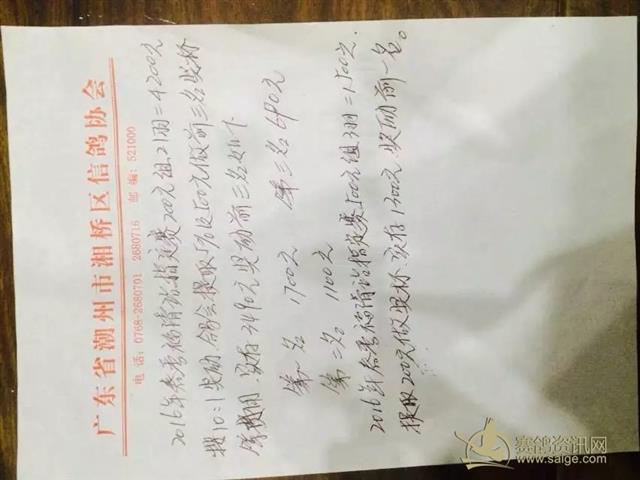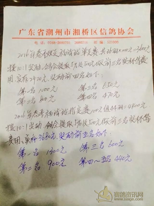 湘桥区信鸽协会16年春季福清站各项明细。