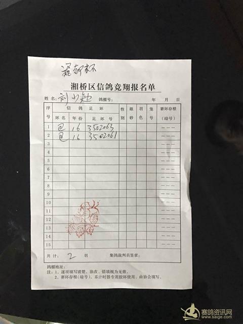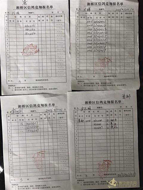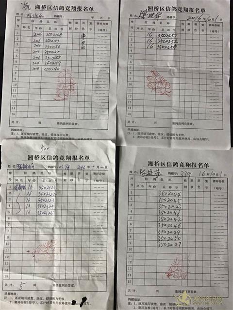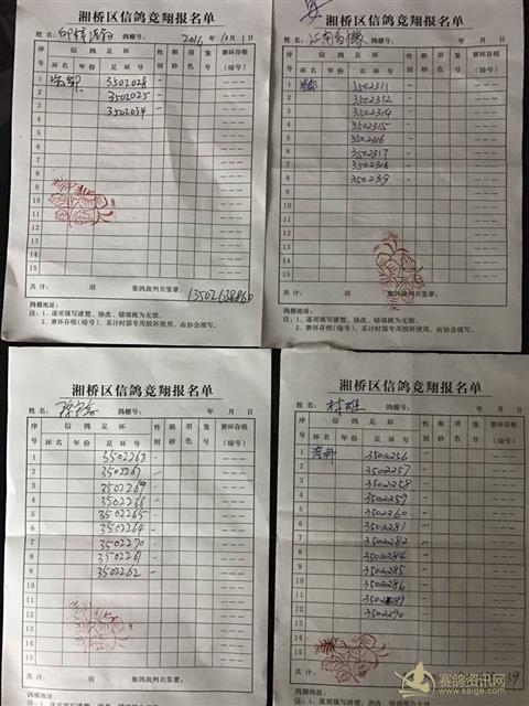 湘桥区信鸽协会秋季秋季瓷都杯表(明细)