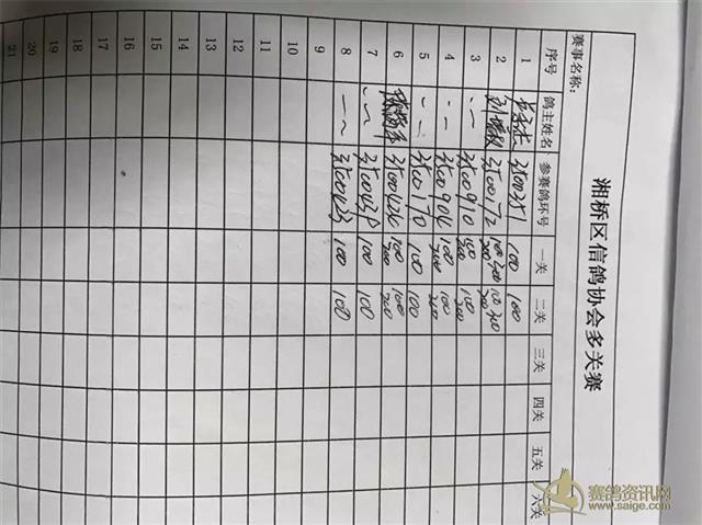 湘桥区信鸽协会三关及瓷都杯各项明细