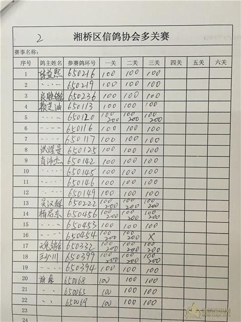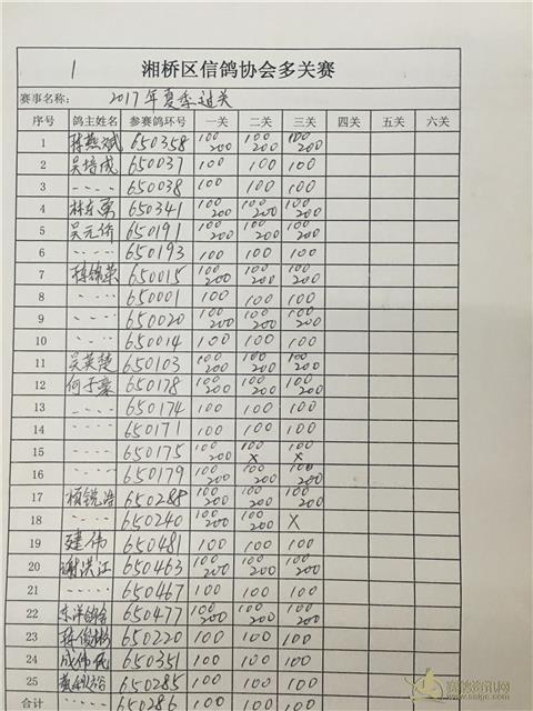潮州市湘桥区2017年夏季两关特比大奖赛-龙海站名单