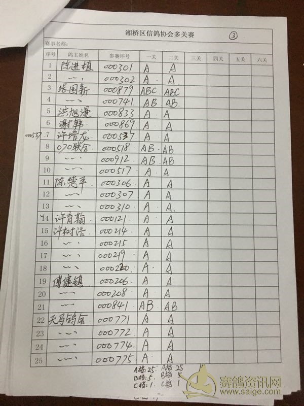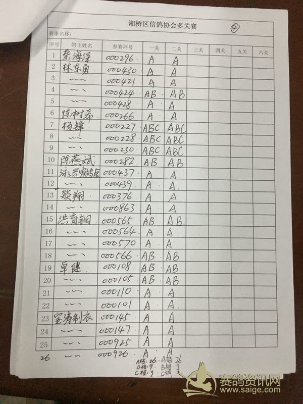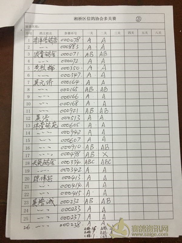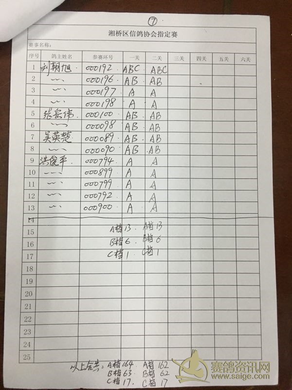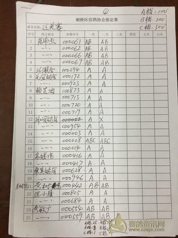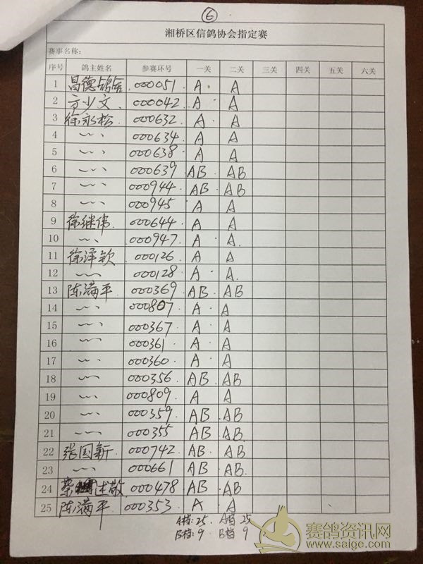 潮州市湘桥区2018年夏季大奖赛第二站过关内表