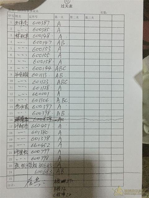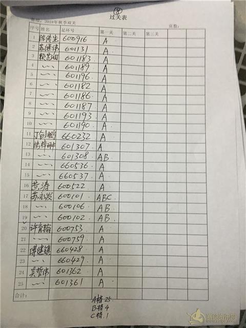 秋季三关及双关过关内表
