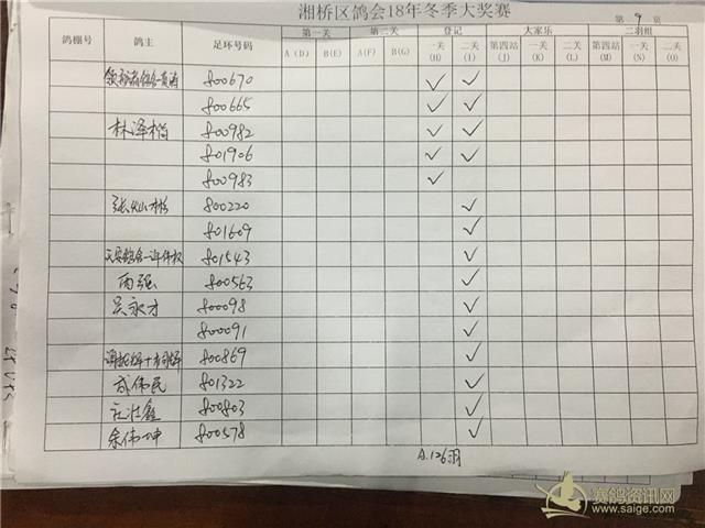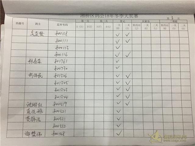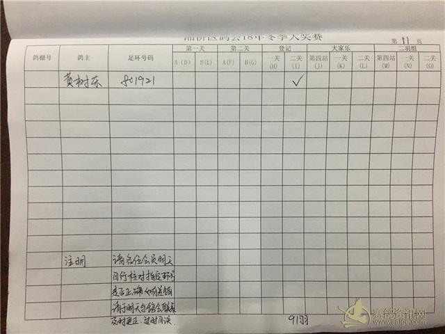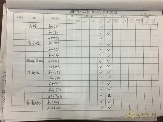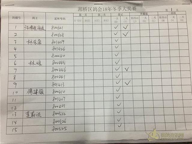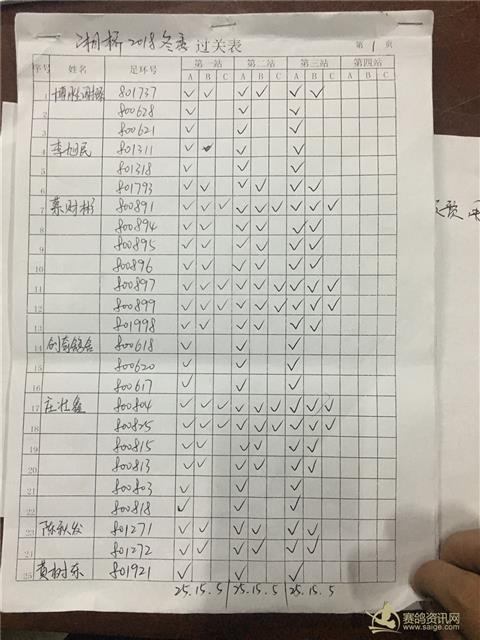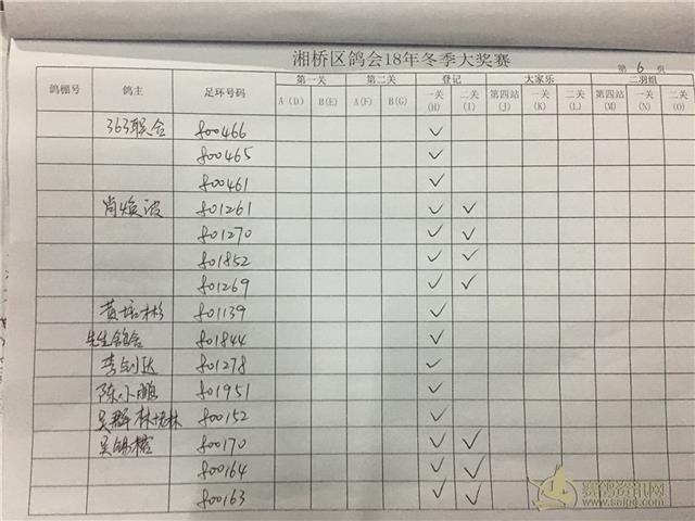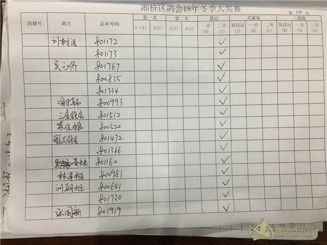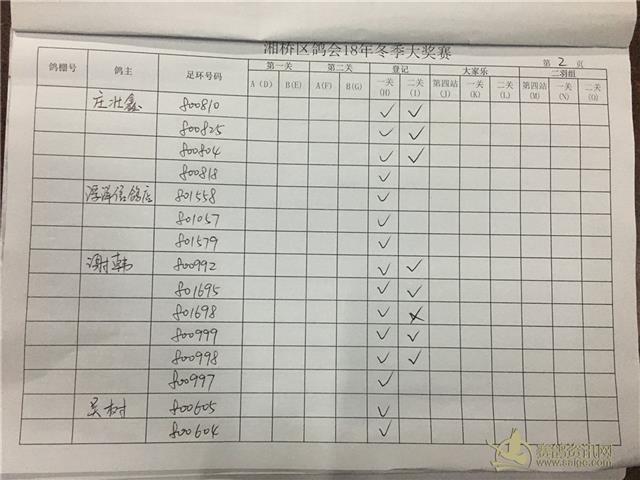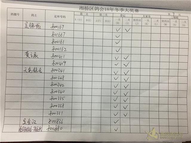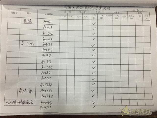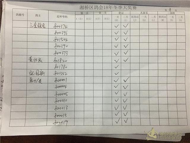 湘桥区信鸽协会2018年冬季西北两关综合过关指定内表