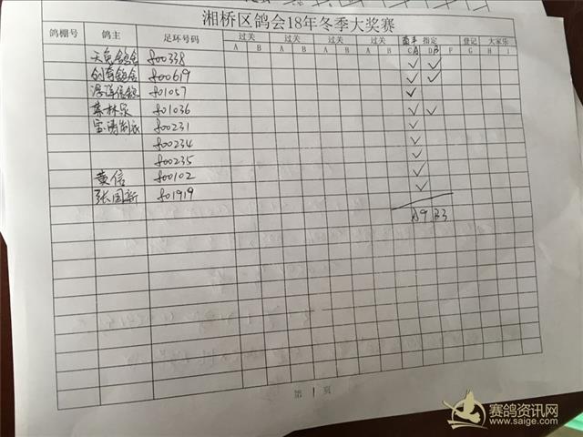 湘桥区信鸽协会2018年冬季西北两关综合过关指定内表