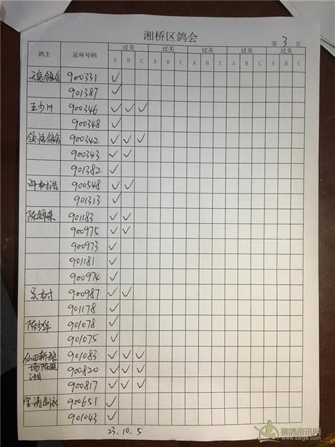 湘桥区信鸽协会2019年春季过关指定内表