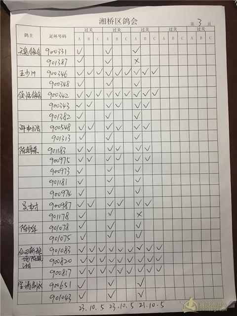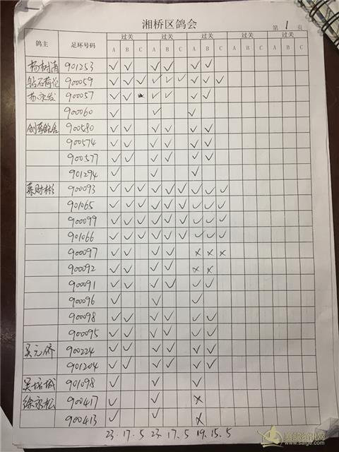 湘桥区信鸽协会2019年春季过关指定内表