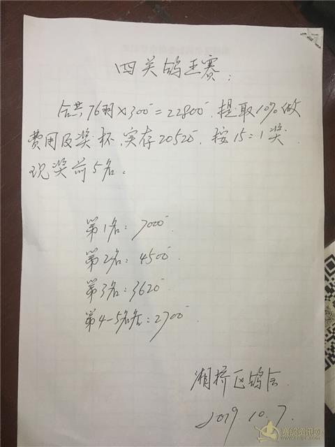 2019年秋季四关鸽王指定内表