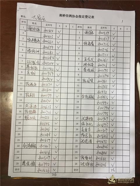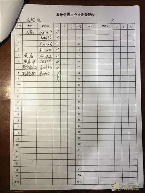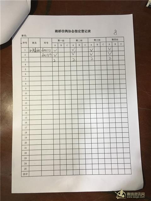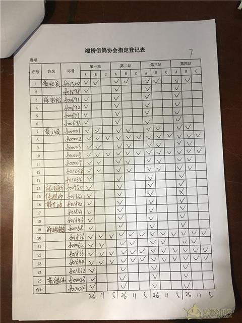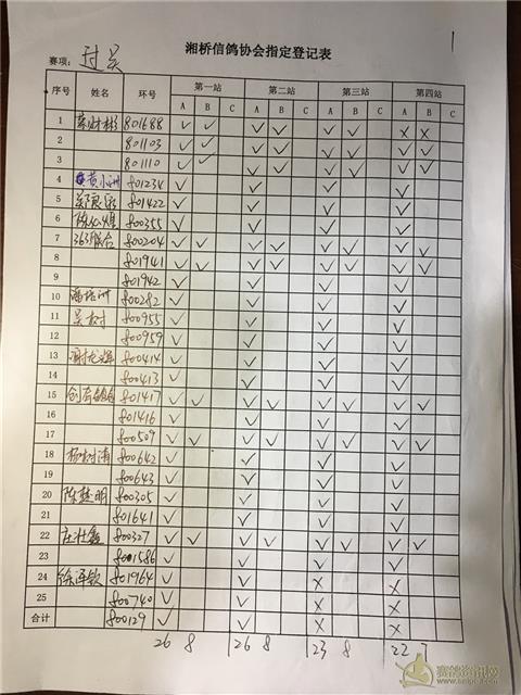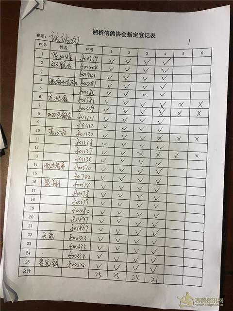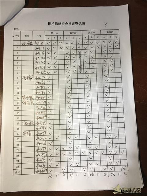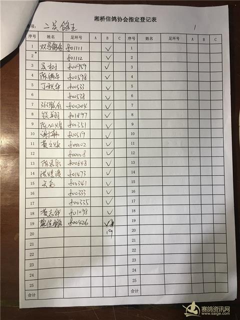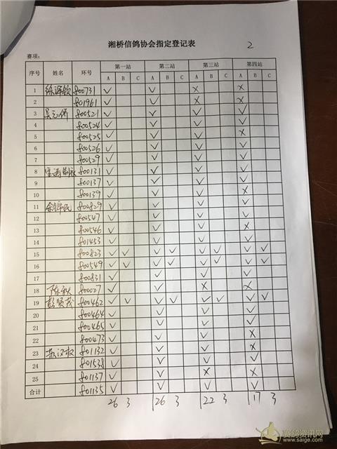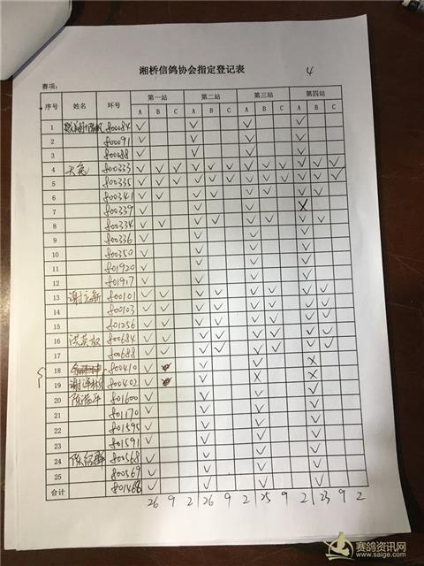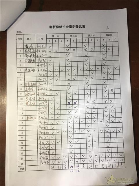 湘桥区信鸽协会2019年冬季西北两关综合过关内表