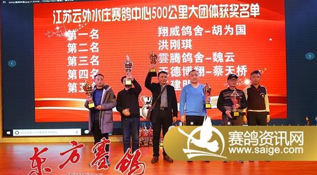 大团体前五名获奖鸽友喜捧奖杯