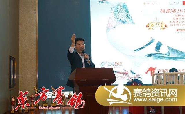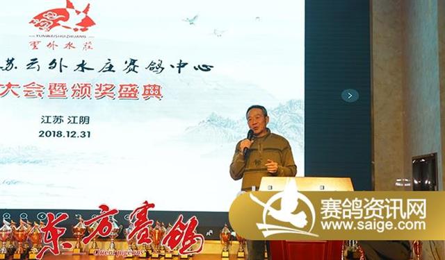 颁奖典礼在18:28拉开序幕,首先由泰州市信鸽协会秘书长严子林致辞,他向本赛季取得优异成绩的鸽友表示祝贺,并祝贺云外水庄公棚取得了本赛季的圆满成功,欢迎全国鸽友来云外水庄参赛,同时向与会嘉宾致以新年的问候,祝大家在2019年取得辉煌的成就。
