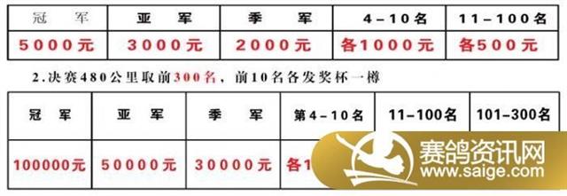 1、预赛300公里取前100名,前3名各发奖杯一樽。