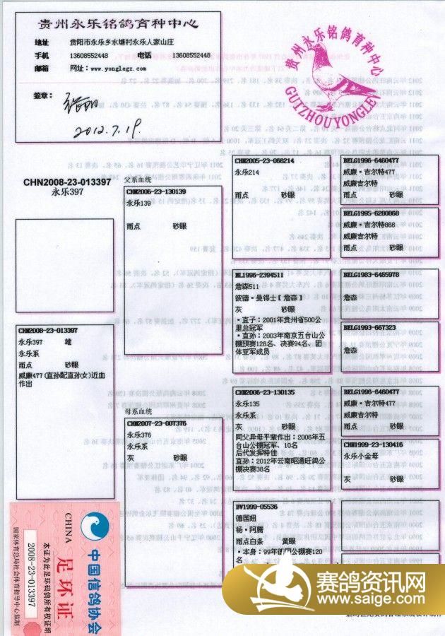 红河公棚8月5日(星期天)第25次鸽街血统书展示-张阳