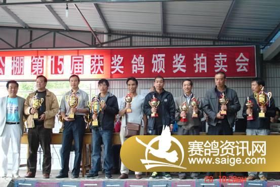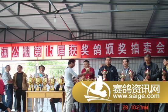 5为获奖鸽友颁发奖杯